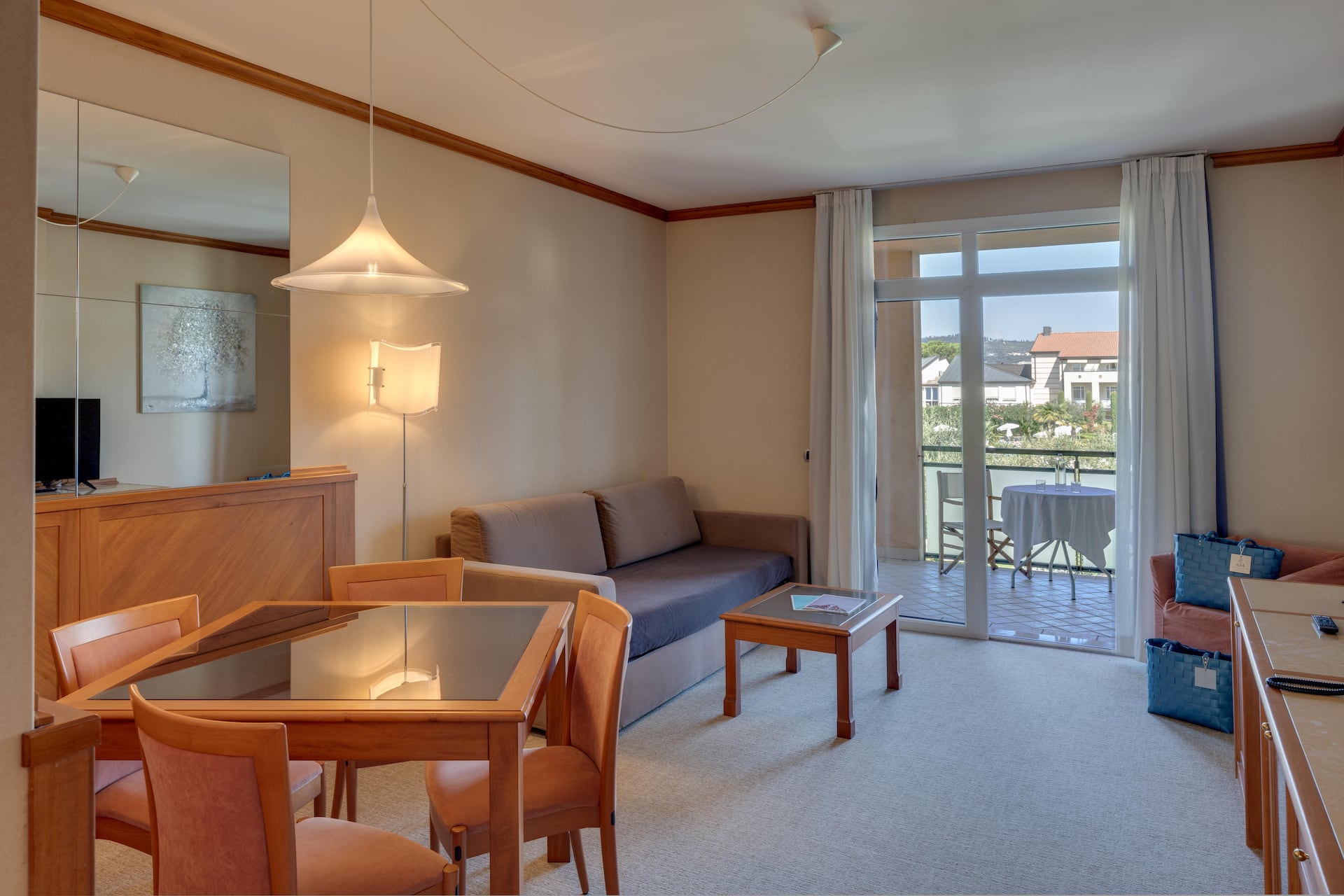 Perhesviitissä on makuu- ja olohuone, kaksi suihkua, joista toinen on kylpyammeessa, wc ja parveke tai terassi. Olohuoneen sohvasta saa lisävuoteet kahdelle. Sviitit sijaitsevat Augustus-sivurakennuksessa.