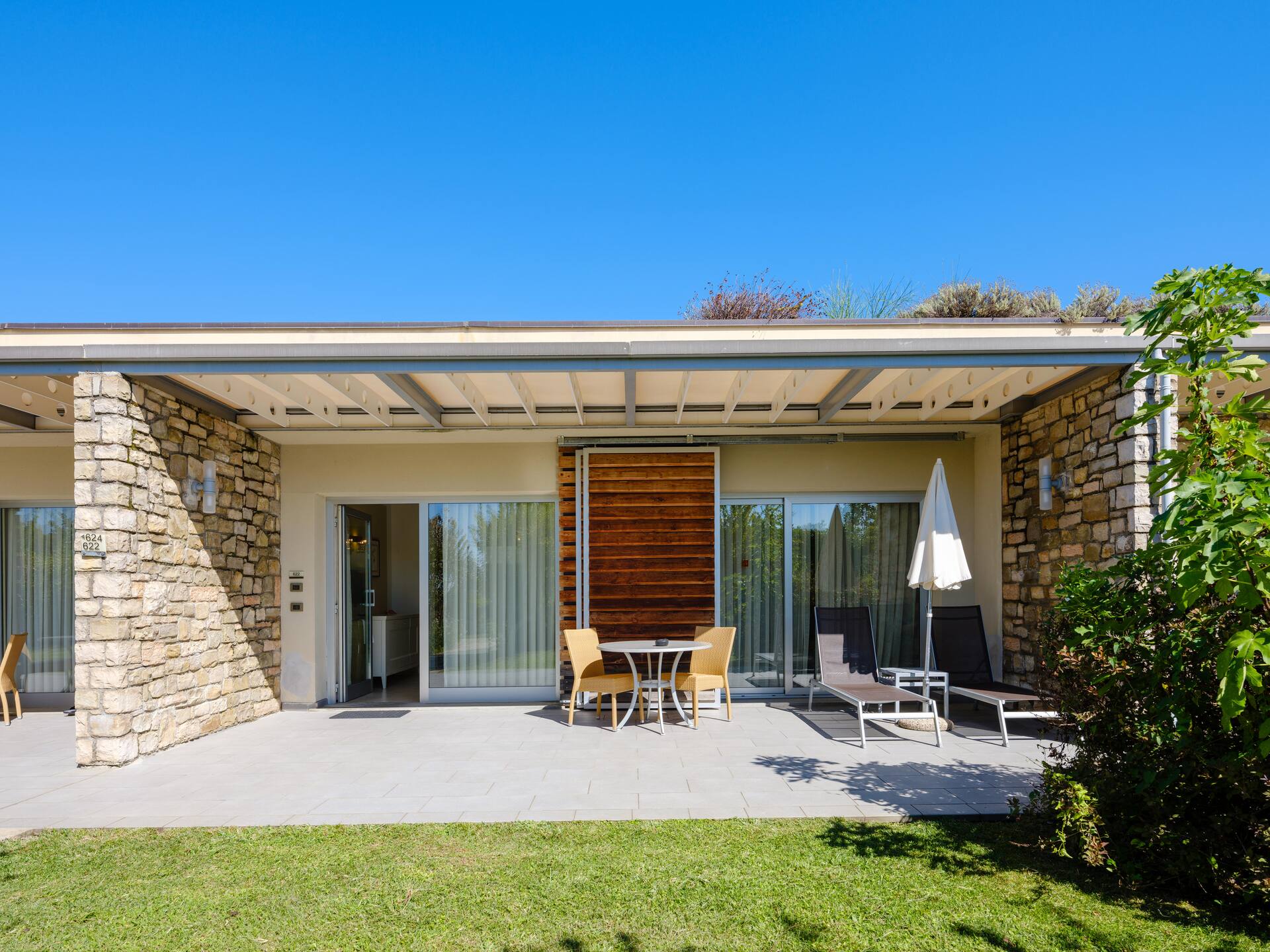 Sviitissä on olo- ja makuuhuone, suihku, erillinen kylpyamme, wc ja terassi, jolla on pöytäryhmän lisäksi kaksi aurinkotuolia ja aurinkovarjo. Sohvasta saa lisävuoteet kahdelle.