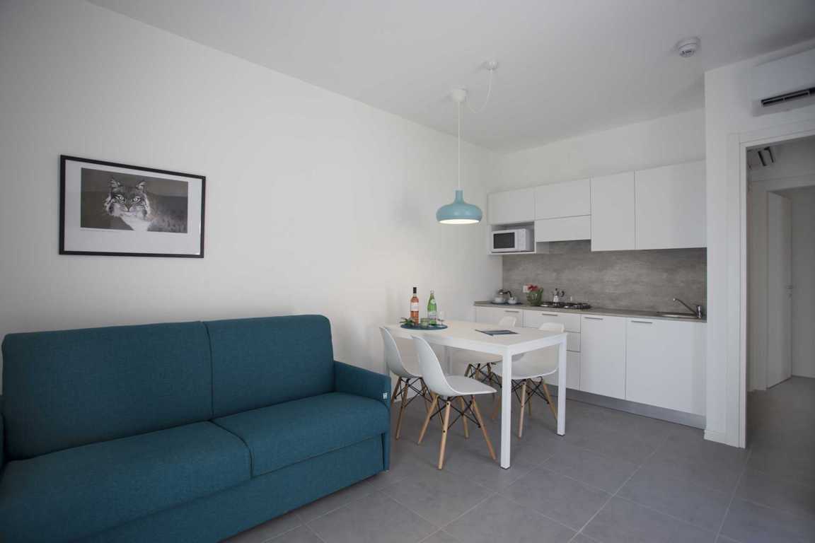 Huoneistossa on olohuone keittonurkkauksineen, kaksi makuuhuonetta, suihku, wc ja parveke tai terassi. Sohvasta saa lisävuoteet kahdelle. Huoneistoon voi majoittua 4–6 henkilöä.