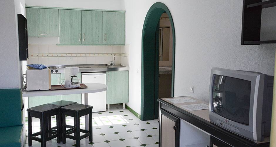 Kaksiossa on baarikeittiö, suihkukaappi, wc ja terassi. Kaksioon voidaan sijata lisävuode kolmannelle.