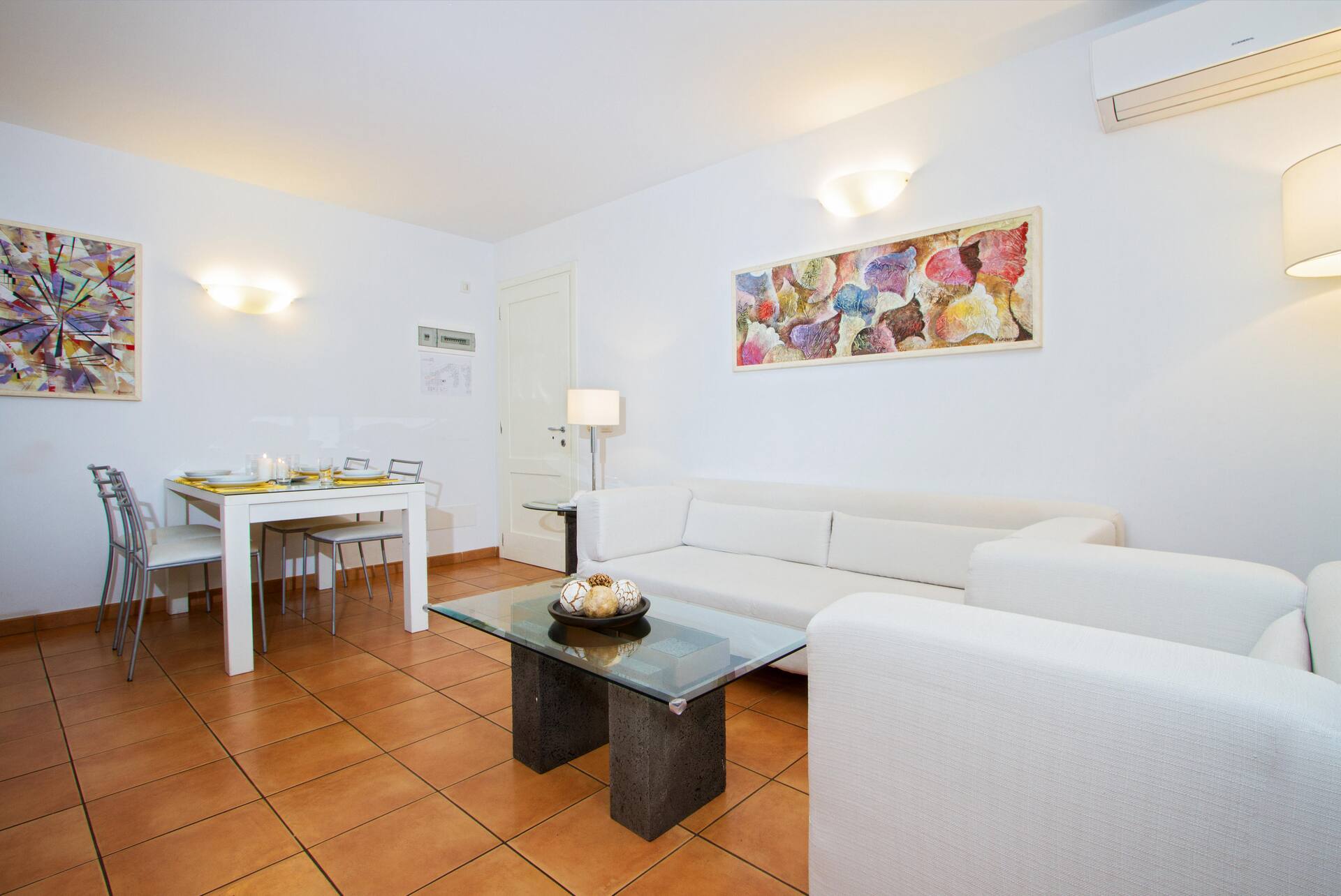 Neljän hengen huoneistossa on keittonurkkaus, olohuone ja kaksi makuuhuonetta, suihku, wc, parveke tai terassi ja osittainen merinäköala.