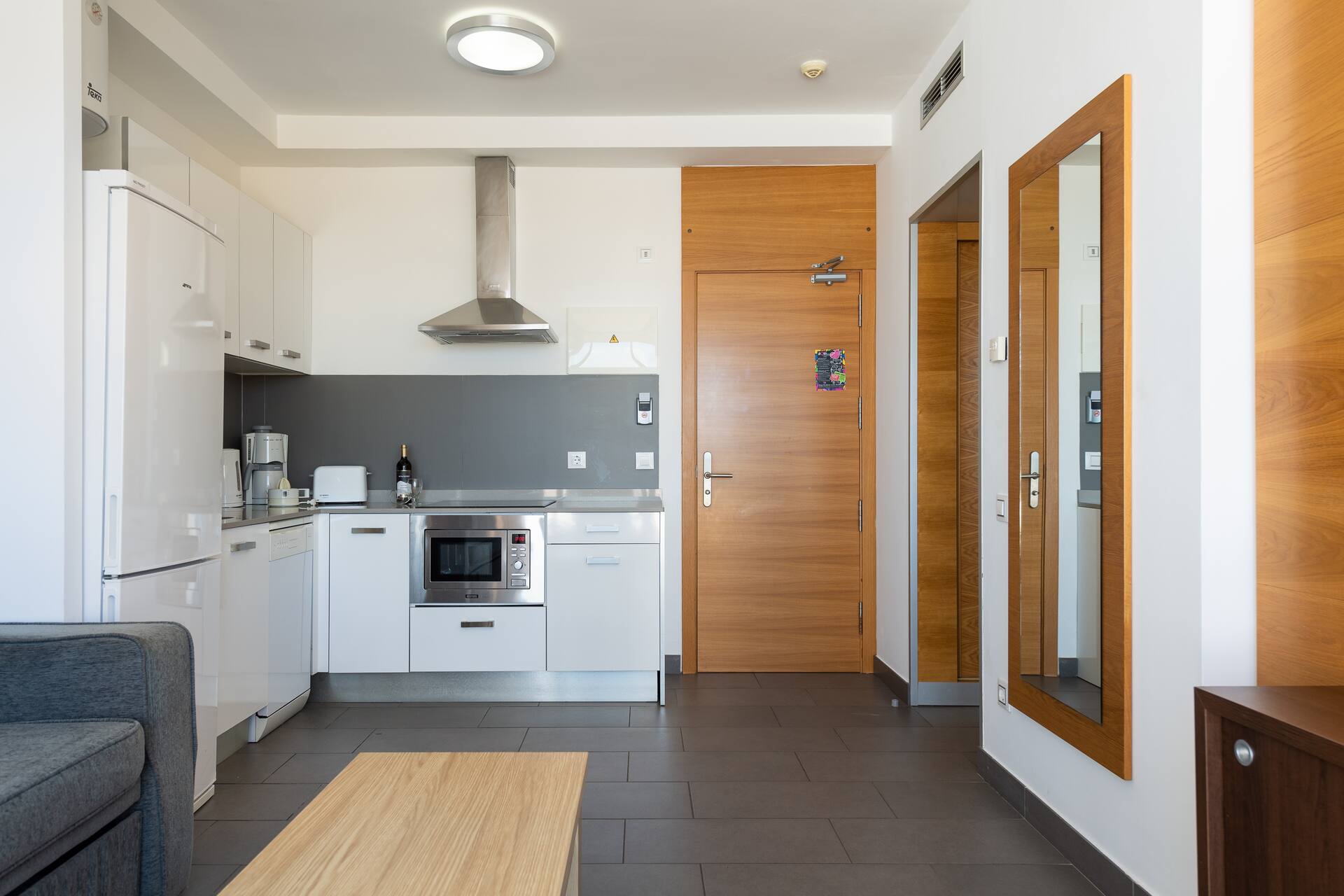 Kaksiossa on keittosyvennys, suihku, wc ja parveke. Sohvasta voi sijata lisävuoteen kahdelle.
