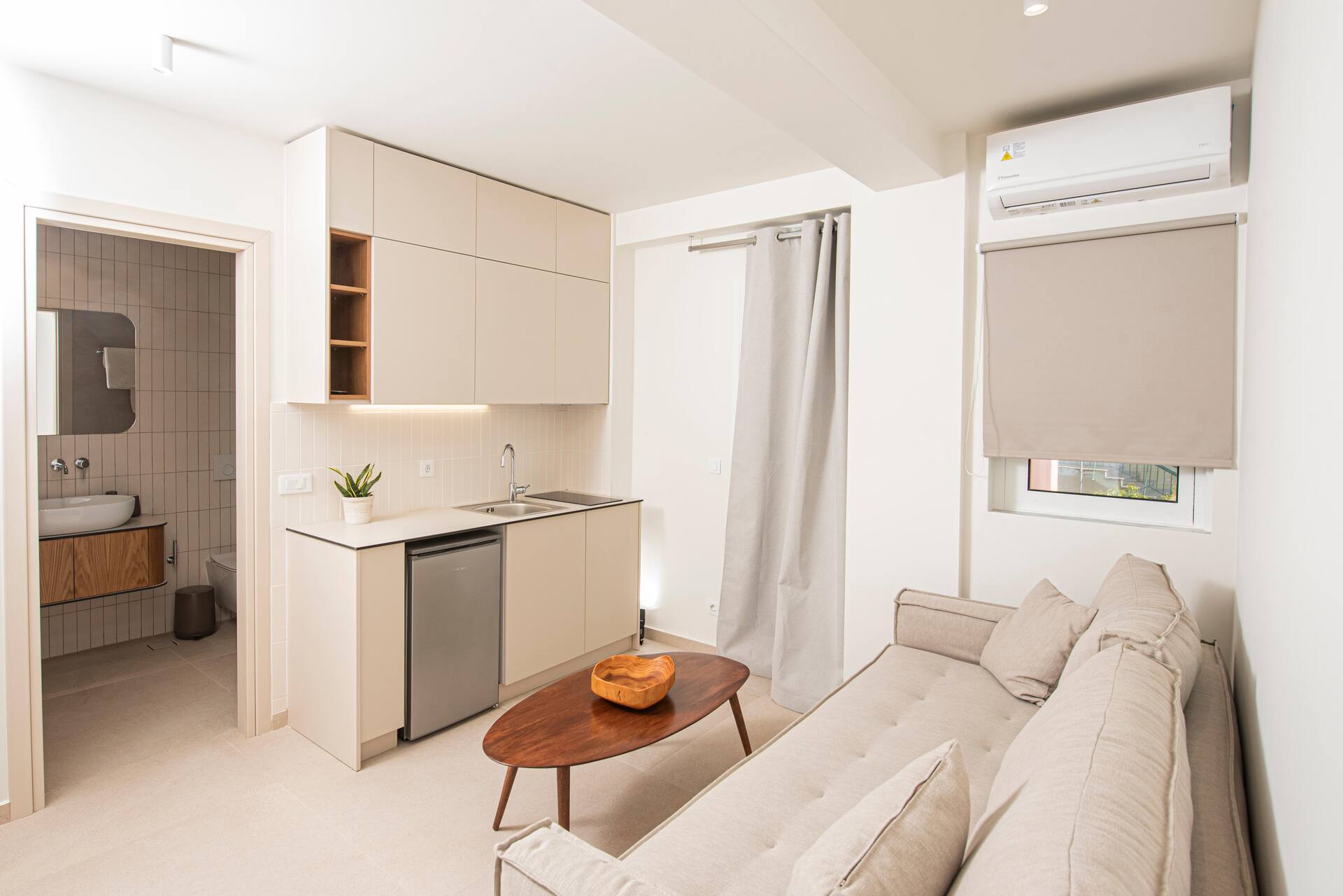 Kaksiossa on keittosyvennys, suihku, wc ja parveke. Huoneistoihin saa sohvasta lisävuoteet kahdelle.