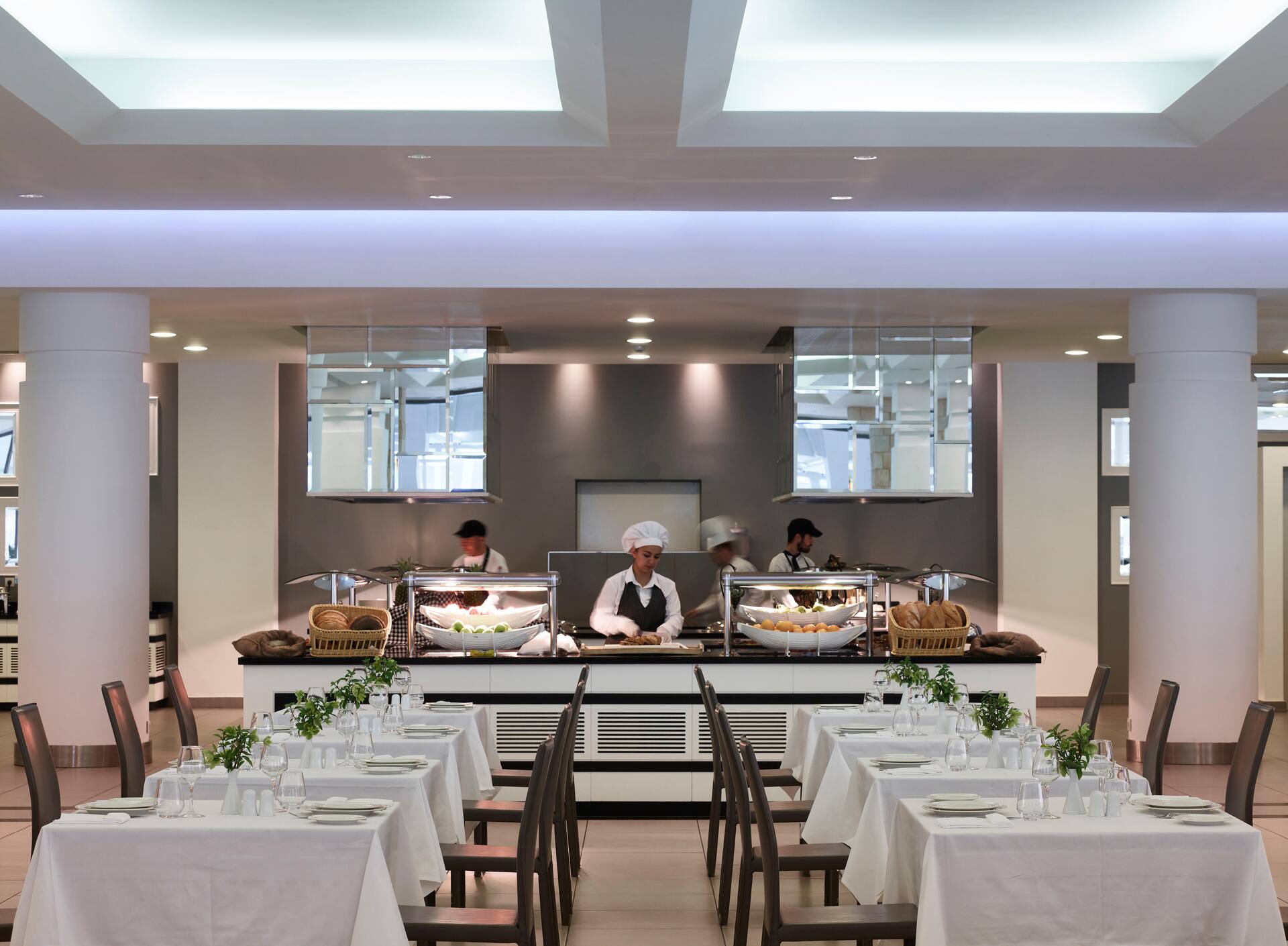 Buffetaamiainen, -lounas ja -illallinen pääravintolassa. Suolaista ja makeaa välipalaa sekä jäätelöä baareissa. yöpyessäsi hotellissa 4–11 yötä voit nauttia illallisen à la carte -ravintoloissa 4 kertaa loman aikana, yöpyessäsi 12–17 yötä 7 kertaa loman aikana. Huoneen minibaari täytetään kolmesti viikossa (vettä, virvokkeita ja olutta). Ultra all inclusiveen sisältyy aterioiden lisäksi paikalliset ja kansainväliset virvoitus- ja alkoholijuomat baareissa ja ravintoloissa klo 7–24.