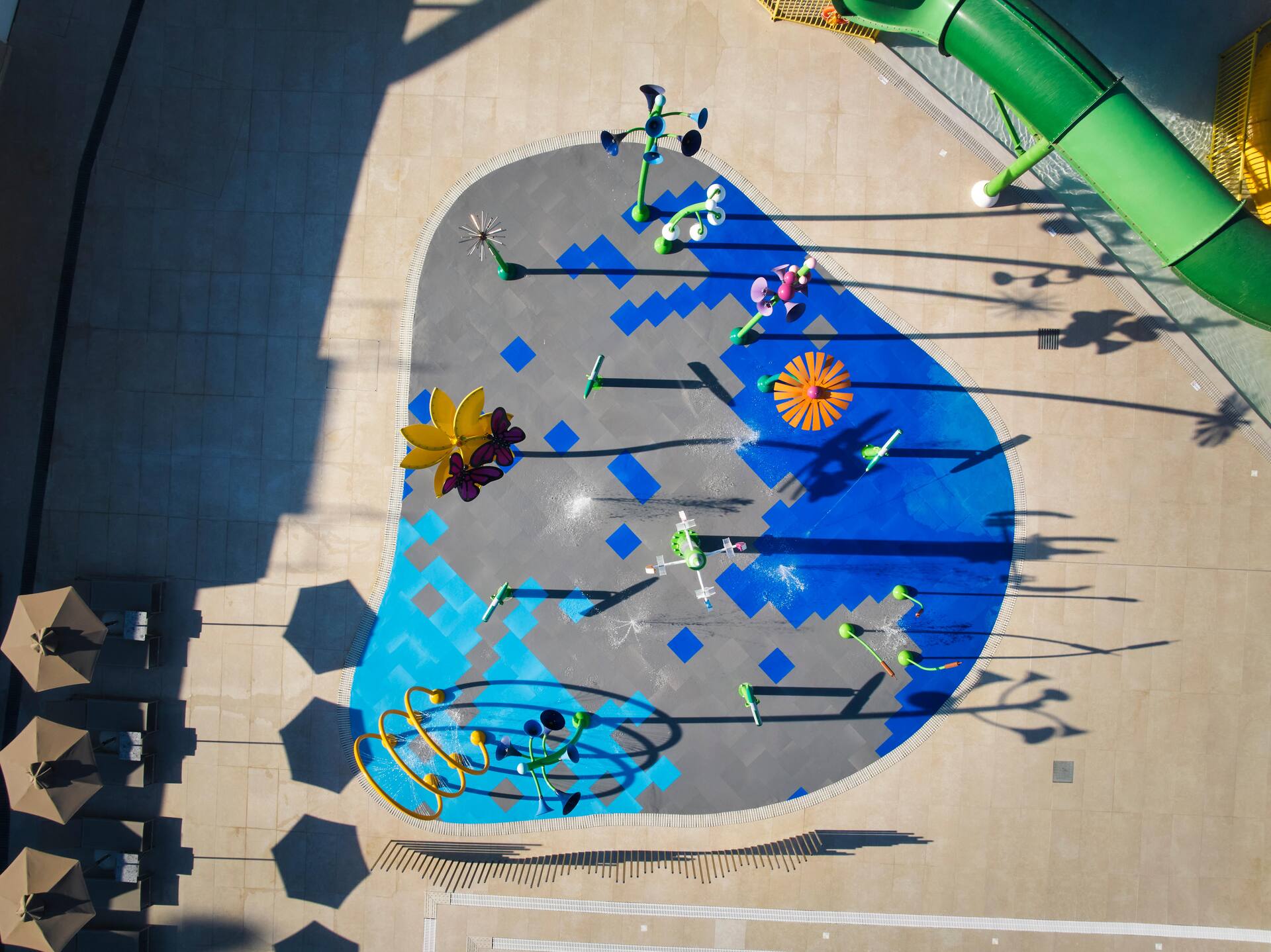 Hotellin uusi vesipuisto on avoinna päivittäin noin klo 10–18 ja tarjoaa hotellivieraille ilmaiseksi vesiseikkailuja koko perheelle. Päävesiliukumäkitornissa on seitsemän huikeaa liukumäkeä lapsille (pituusraja 120 cm), kun taas Aqua Towerissa on neljä hauskaa liukumäkeä pienemmille. Alle 2-vuotiaille sopii matala animaatioallas sammakko- ja mustekalaliukumäkineen, ja koko perhe voi nauttia roiskeista Spray Action Zonella.