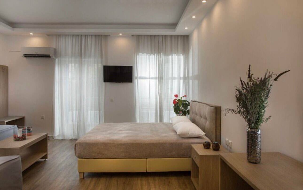 Vain noin 400 metrin päässä hotellilta avautuu Agios Georgioksen ranta – suojaisa ja loivasti syvenevä hiekkaranta, joka sopii täydellisesti kiireettömiin rantapäiviin ja auringonottoon. Lyhyen kävelymatkan päässä odottavat myös kaupungin tavernat, kahvilat ja Vanhankaupungin tunnelmalliset kujat, jotka houkuttelevat iltakävelyille ja paikallisten herkkujen pariin.
