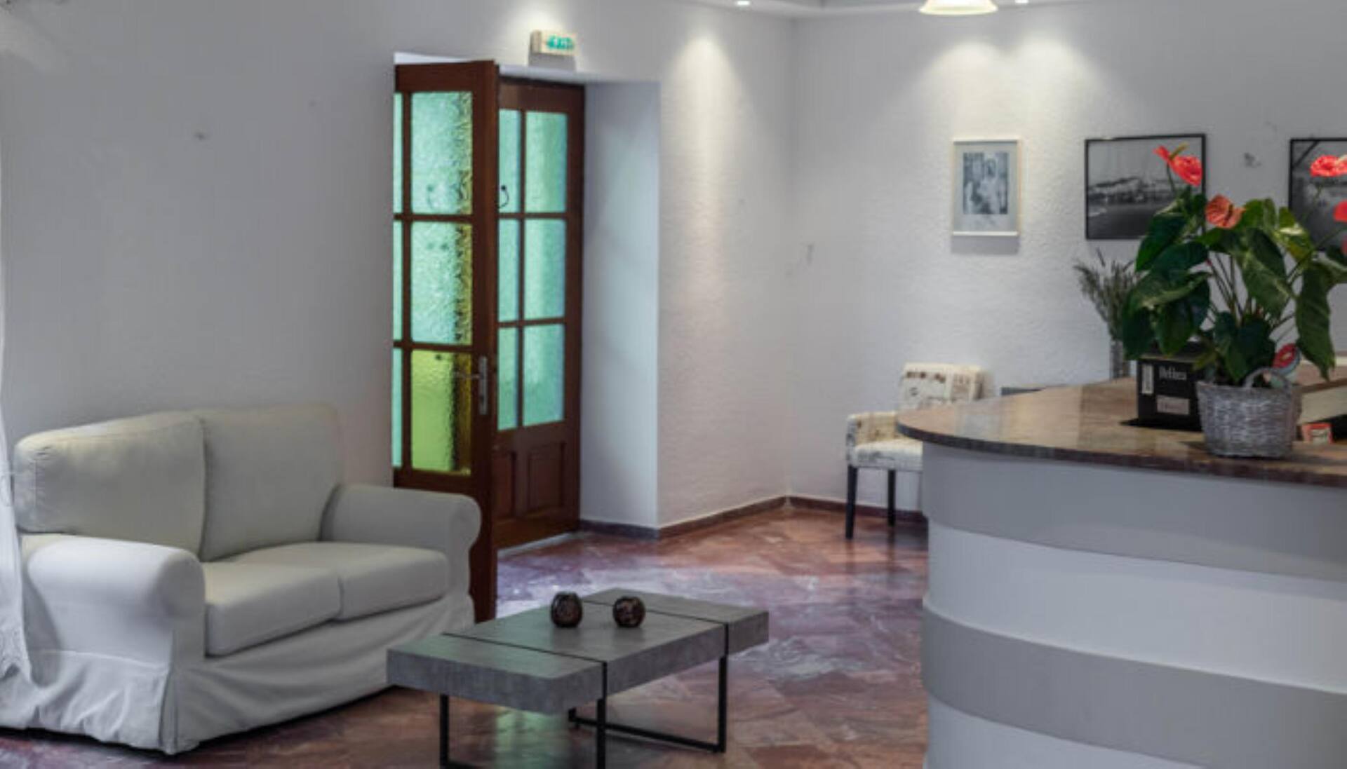 Rauhoittavan valkoiset, vaaleanharmaat ja beiget sävyt sävyttävät tiloja läpi koko hotellin santorinilaiseen tyyliin. Tässä hyvän palvelun hotellissa lomaillaan tyylikkäästi niin pariskuntien kuin ystäväseurueidenkin kesken!