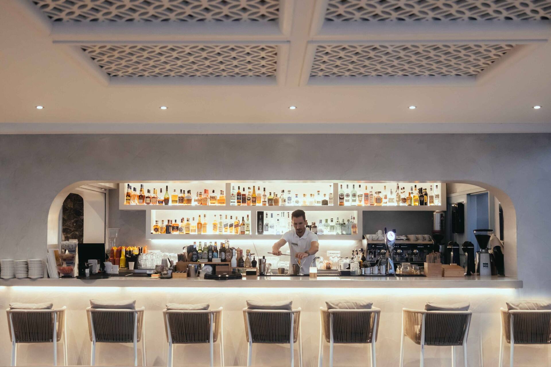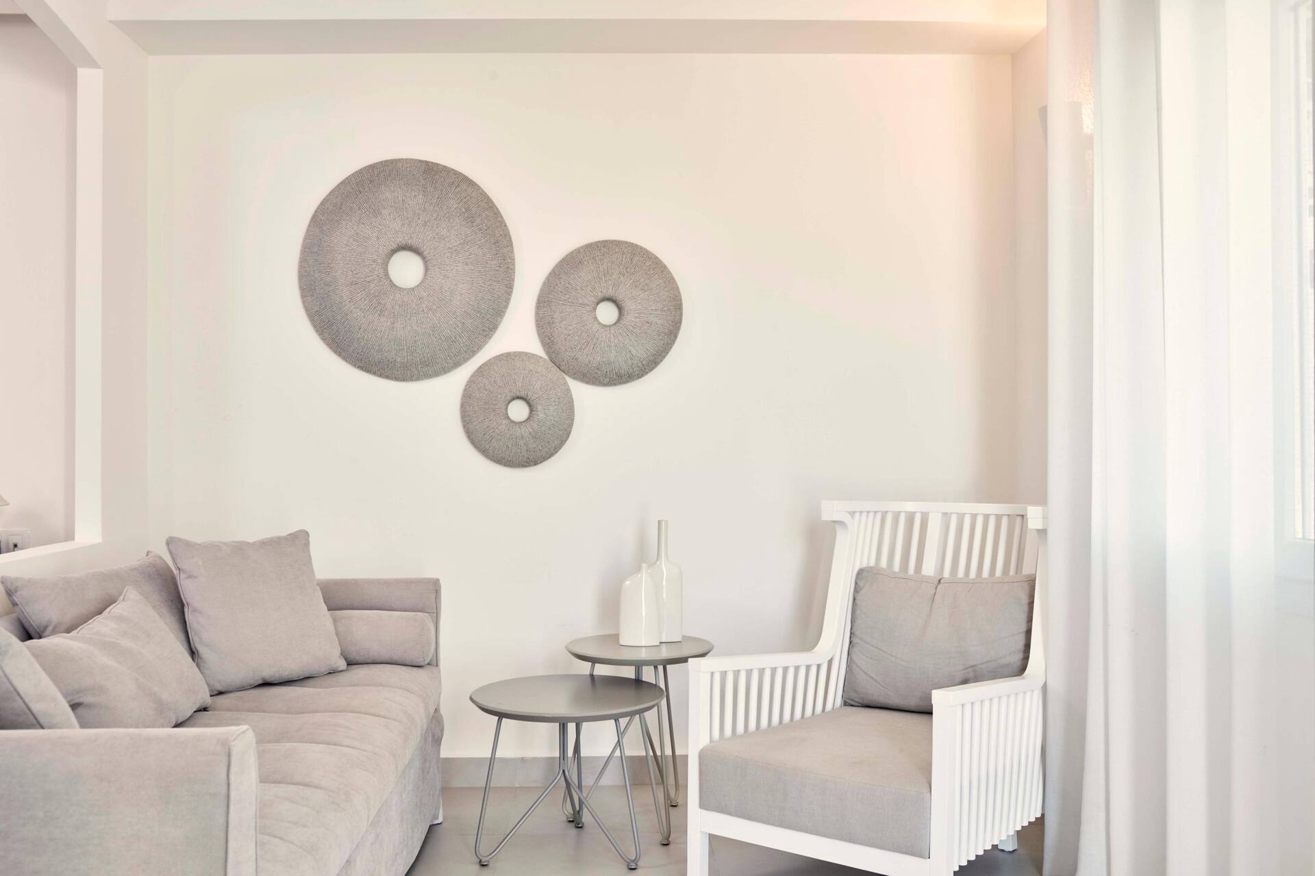 Agios Georgioksen matala hiekkaranta avautuu vain muutaman minuutin kävelymatkan päässä. Naxoksen keskustan tunnelmalliset kujat, tavernat ja pikkuliikkeet tavoittaa helposti jalan tai bussilla – pysäkki löytyy suoraan hotellin edestä. Lyhyet välimatkat tekevät arjesta helppoa, eikä vuokra-auto ole välttämättömyys.