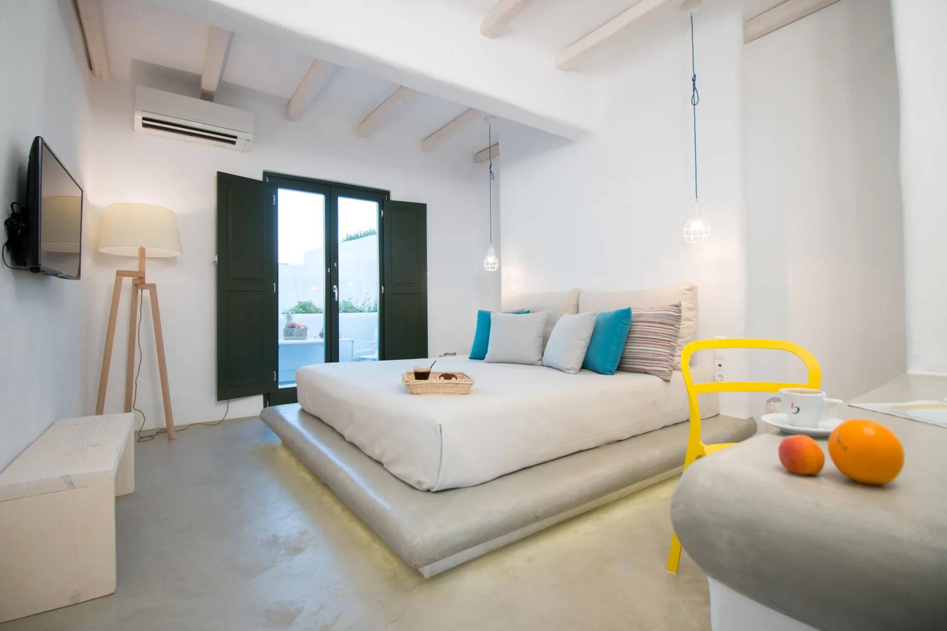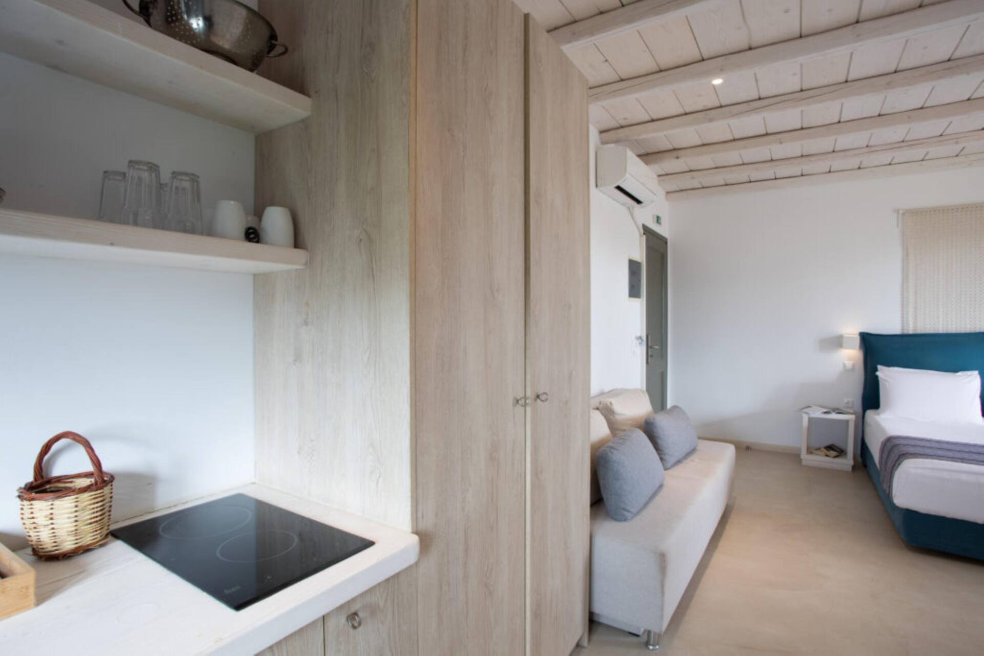 Agios Georgioksen matala hiekkaranta avautuu vain muutaman minuutin kävelymatkan päässä. Naxoksen keskustan tunnelmalliset kujat, tavernat ja pikkuliikkeet tavoittaa helposti jalan tai bussilla – pysäkki löytyy suoraan hotellin edestä. Lyhyet välimatkat tekevät arjesta helppoa, eikä vuokra-auto ole välttämättömyys.
