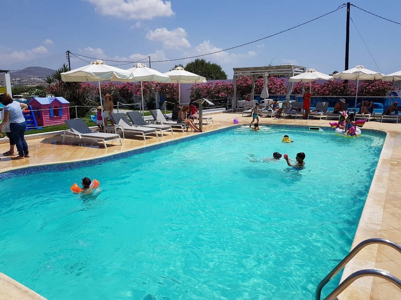 Huoneet yllättävät avaruudellaan, ja niistä osassa on myös keittomahdollisuudet. Allasalue kutsuu rentoutumaan: Aurinkotuolit, varjot ja pieni allasbaari tarjoavat mukavat puitteet leppoisalle päivälle, ja lisää auringonottotilaa riittää nurmialueella. Lapsia varten allasalueelta löytyy aidattu allas ja pieni leikkipaikka, mutta alueen tunnelma pysyy rauhallisena myös aikuisille matkustajille.