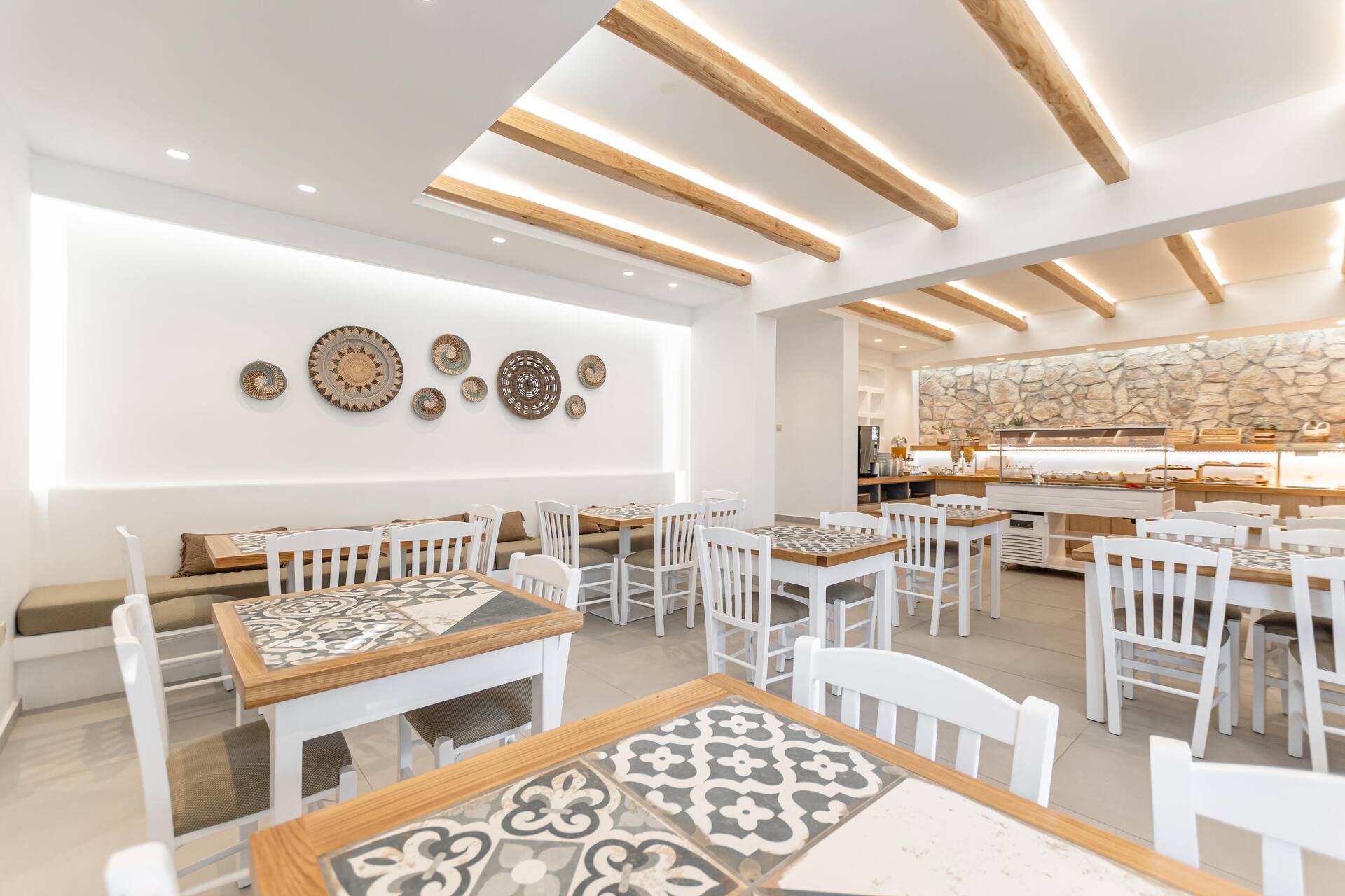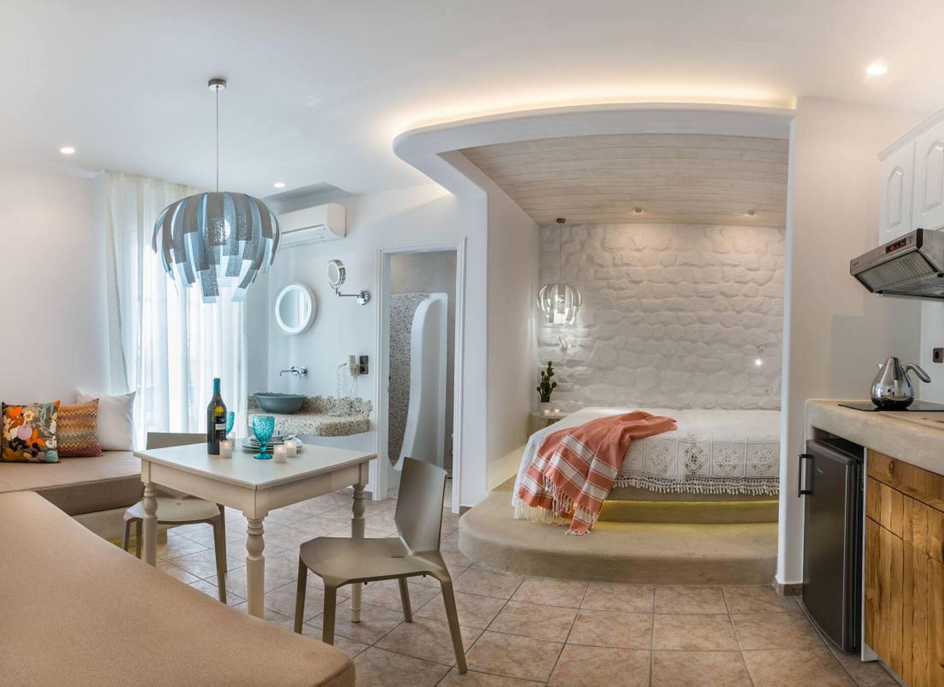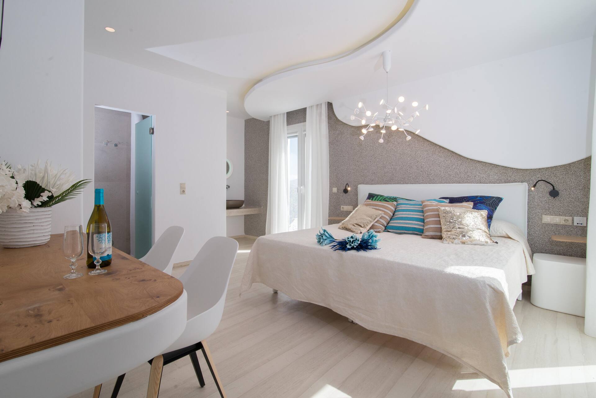 Ruokailusta huolehtii hotellin elegantti ravintola, joka tarjoilee välimerellisiä ja kansainvälisiä herkkuja. Päivän kruunaa Swell Lounge Bar, jossa voit nauttia virkistävän cocktailin Santorinin ilta-auringon laskiessa.