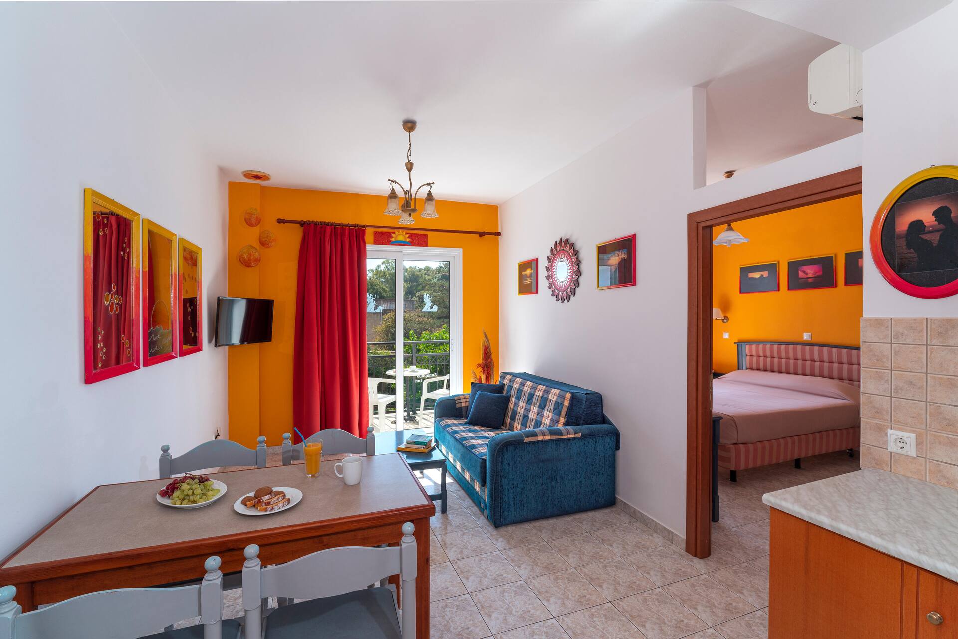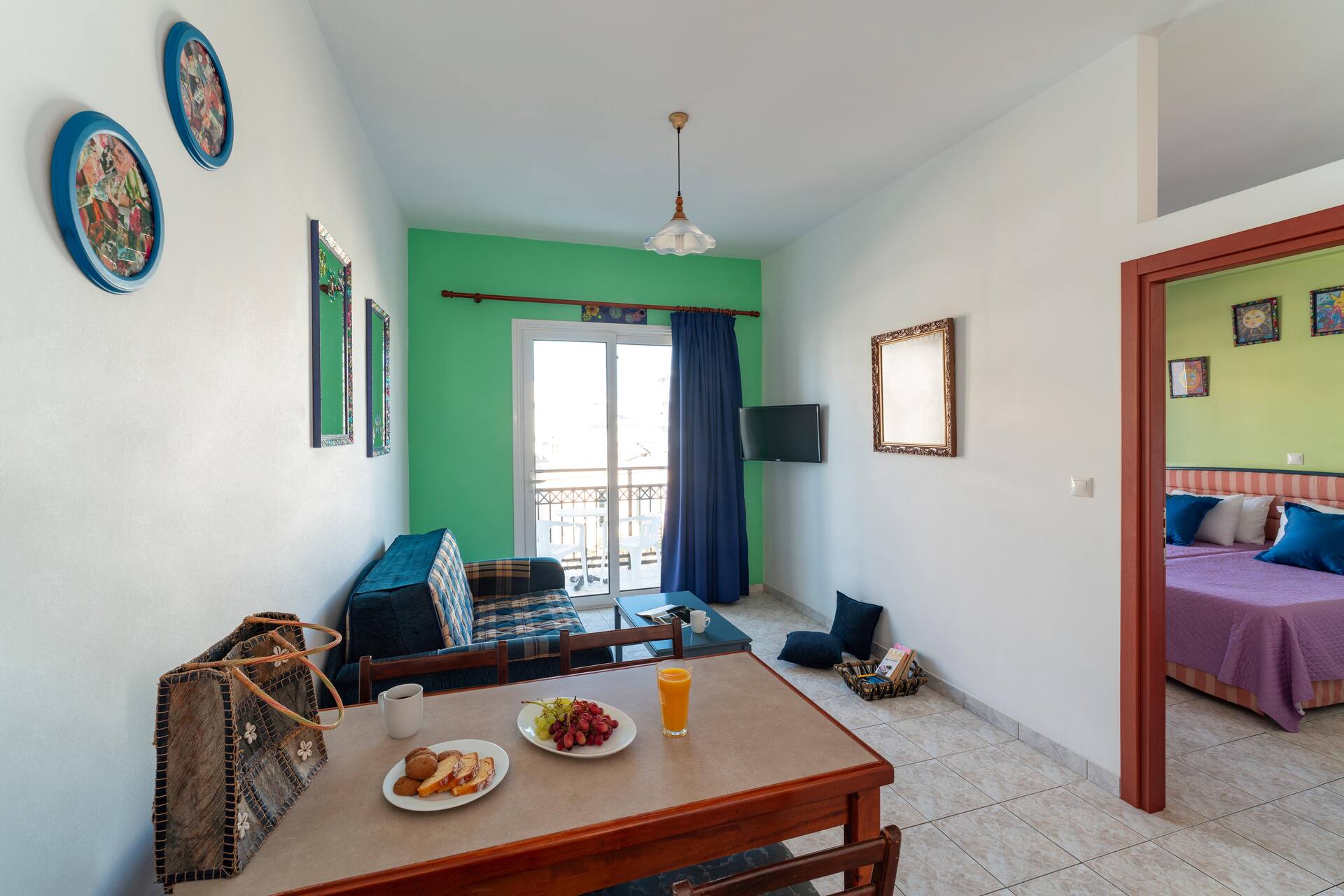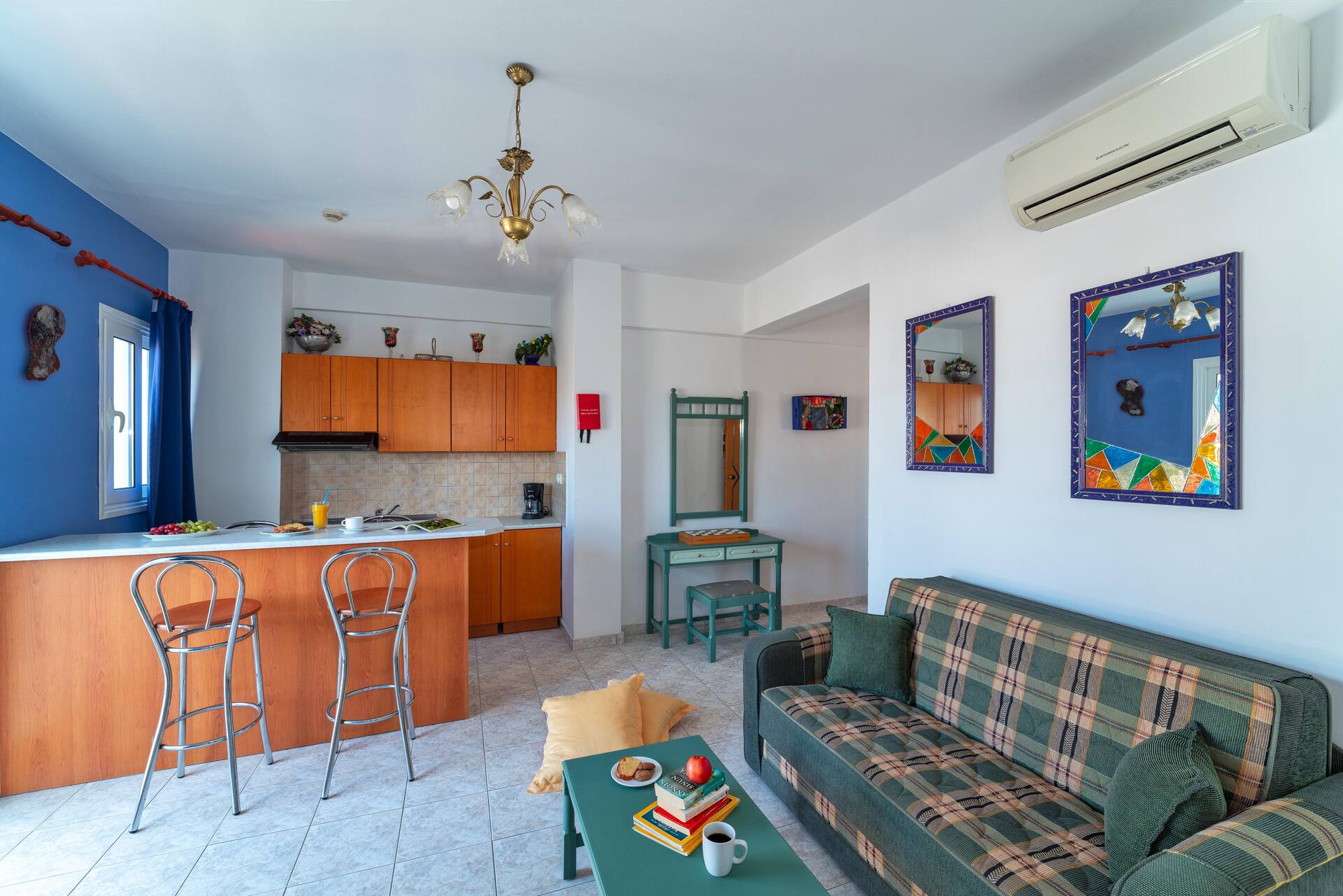 Kaksiossa on keittosyvennys, suihku tai suihku kylpyammeessa, wc ja parveke. Huoneisiin saa kaksi lisävuodetta olohuoneen sohvasta.