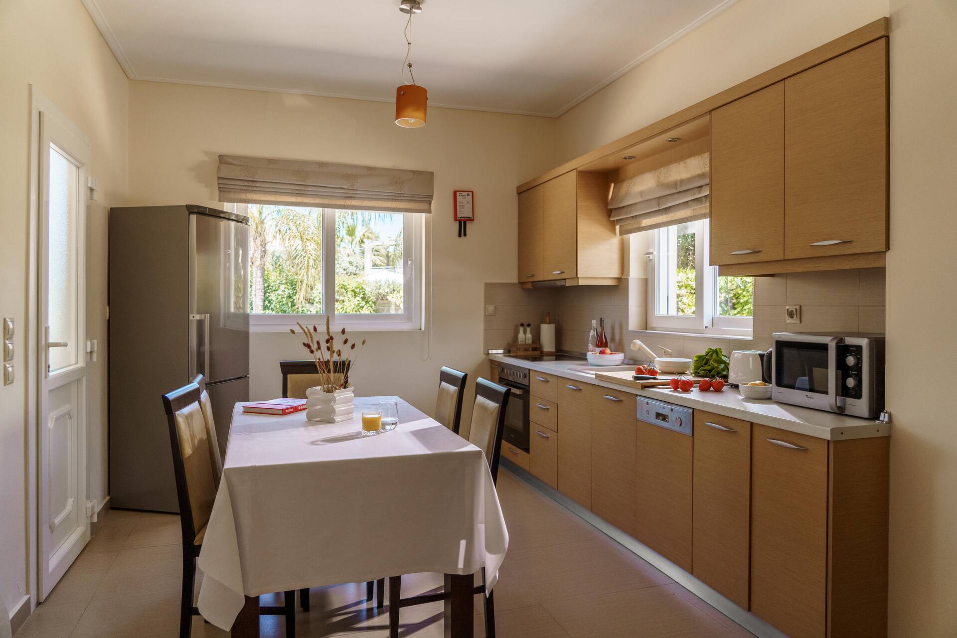 Kaksikerroksisen huvilan alakerrassa on olohuone, makuuhuone (jossa oma wc ja suihku), hyvinvarusteltu keittiö, yhteinen wc sekä käynti omalle pihalle, jolla on oma uima-allas (syvyys 60–120 cm), grilli ja autopaikka. Yläkerrassa on kaksi makuuhuonetta, joissa molemmissa oma kylpyamme jossa suihku ja wc, sekä käynti parvekkeelle. Olohuoneen nojatuolista voidaan sijata lisävuode seitsemännelle.