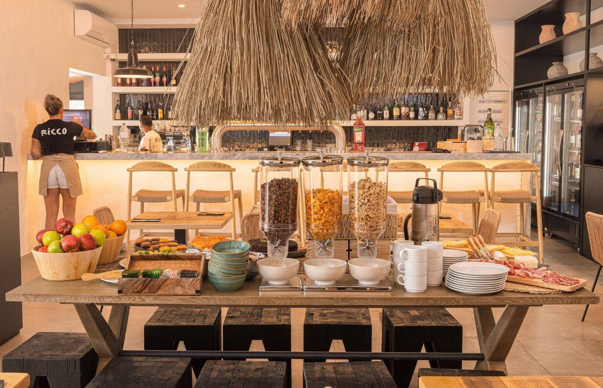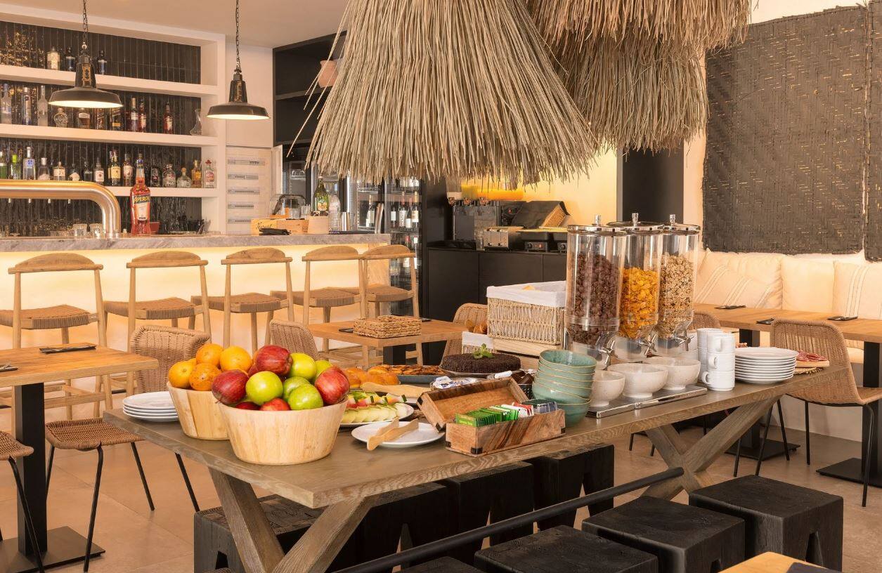 Hotellin ravintolassa tarjoillaan buffetaamiainen sekä lisämaksulliseen puolihoitoon sisältyvä illallinen. Päivän aikana voit tilata à la carte -listalta kevyitä välipaloja, kuten salaatteja ja leipiä. Ravintolan yhteydessä toimii myös baari, jossa voit istuskella iltaisin drinkkiä siemaillen. Hotellin pieni minimarket palvelee arjen tarpeissa, ja vain muutaman sadan metrin säteellä hotellista on useita ravintoloita ja kauppoja.