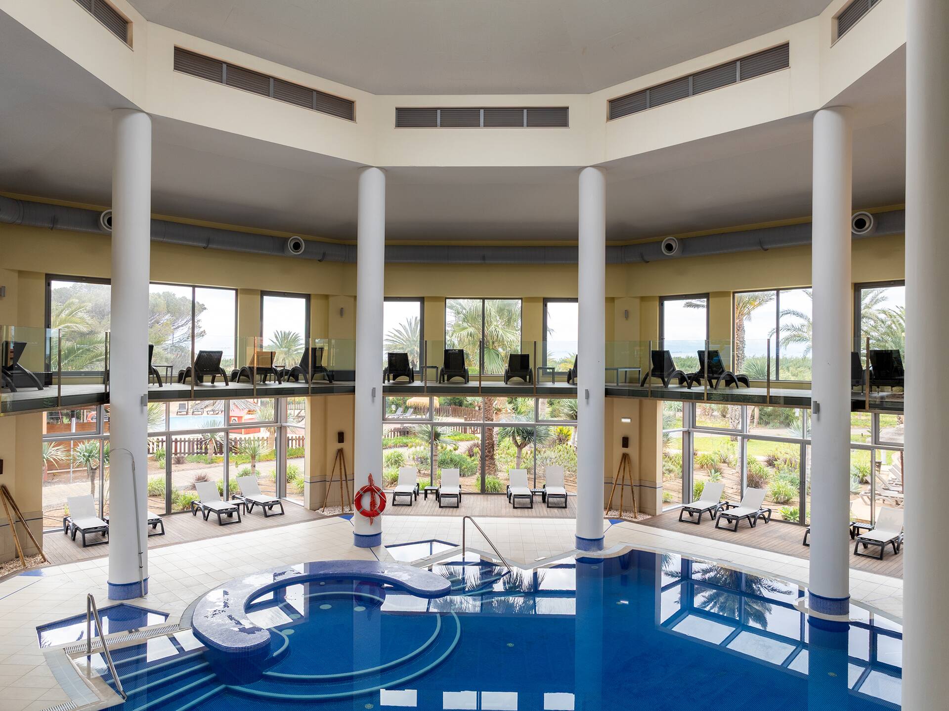 Hotelli levittäytyy suurelle, vehreiden istutusten kaunistamalle alueelle, ja sen sydämenä toimii suuri, laguunimainen uima-allas sekä pienempi lämmitetty ulkoallas, joiden ympärillä on runsaasti aurinkotuoleja ja rentoa lomatunnelmaa. Perheen pienimmille on oma matala lastenallas. Spa‑osastolta löytyvät lämmitetty sisäallas, poreallas, sauna ja turkkilainen sauna – kaikki all inclusiveen sisältyen käytettävissä. Lisämaksusta tarjolla on hyvää tekeviä hierontoja.