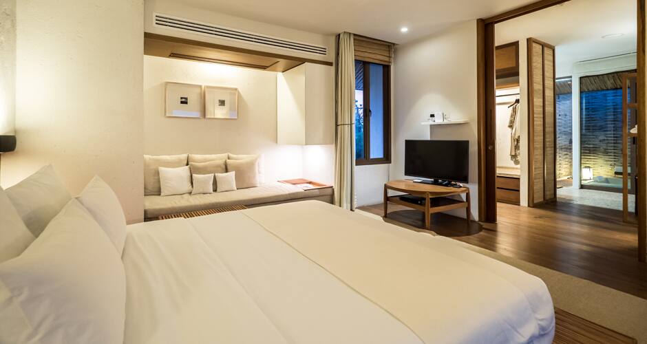 Silksand-huone n. 34 m², Sansky Urban -huone n. 42 m², Sansky Deluxe -huone n. 56 m², Oceanbed Jacuzzi Villa n. 64 m², Oceanbed Pool Villa n. 64 m²