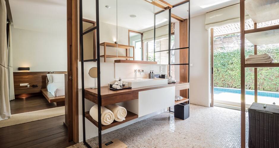 Oceanbed Pool Villa -huoneessa on makuuhuone ja kylpyhuone, jossa on suihku ja wc. Huoneen terassilta on käynti omaan uima-altaaseen (3,5 x 11 m), jonka yhteydessä on poreamme. Huoneessa on parivuode, lisävuode kolmannelle sijataan sohvasta. Huoneet sijaitsevat lähempänä rantaa.