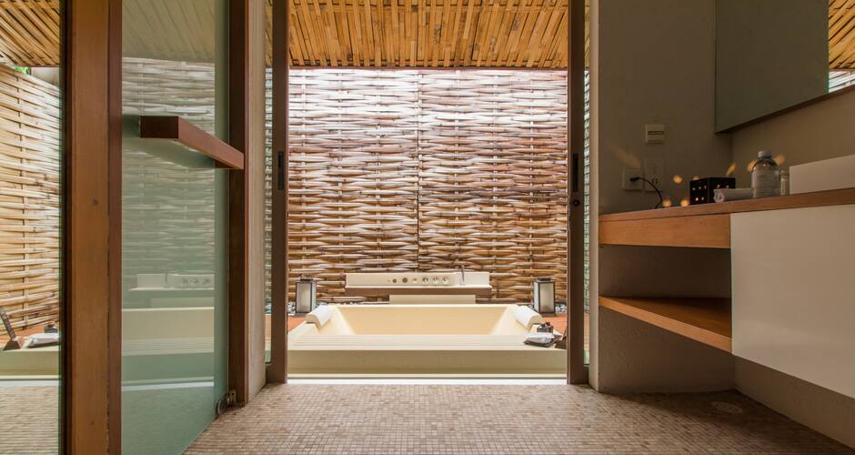 Oceanbed Jacuzzi Villa -huoneessa on makuuhuone ja kylpyhuone, jossa on suihku ja wc. Kylpyhuoneesta on käynti ulkotilassa sijaitsevaan poreammeeseen. Terassilla on istuinryhmä. Huoneessa on parivuode, lisävuodemahdollisuus kolmannelle. Huoneet ovat kaksikerroksisen rakennuksen ala- tai yläkerrassa, lähempänä rantaa.