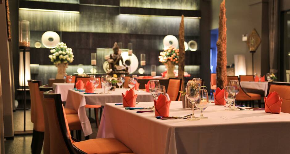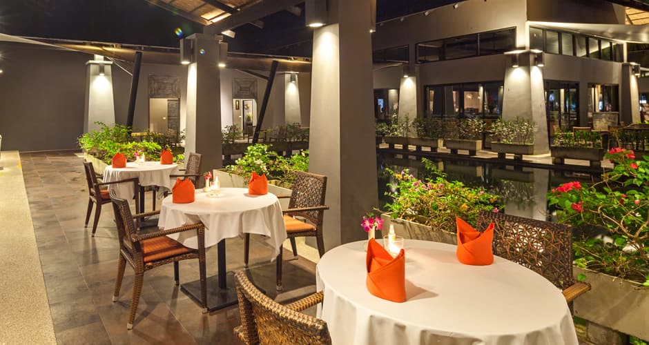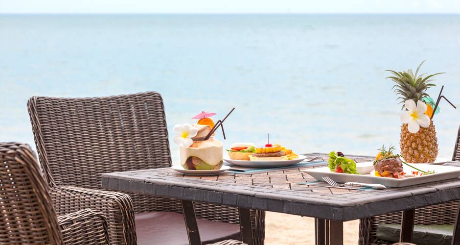 Juomia ja pientä purtavaa tarjoillaan allasalueen läheisyydessä. Rennossa rantaravintolassa voit upottaa varpaat hiekkaan, ihailla auringonlaskuja ja nauttia BBQ-pöydän antimista sekä merenherkuista. Lootuslammen edustalla sijaitsevan tyylikkään illallisravintolan listalla on laadukkaita liha-aterioita ja useita kasvisvaihtoehtoja, Motown On Fire -ravintola on yksi Khao Lakin suosituimmista. Buffetaamiainen nautitaan Beyond Cafessa. Ravintoloissa tarjotaan myös hotellin omassa puutarhassa viljeltyjä vihanneksia ja leipomossa paistettuja tuoreita leipiä ja leivonnaisia.