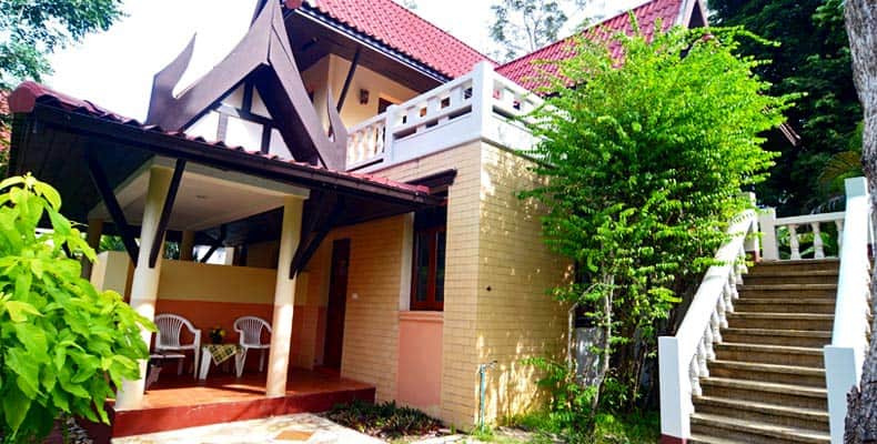 Kauniilla Klong Daon rannalla sijaitseva Holiday Villa koostuu useista, osittain rinteessä sijaitsevista thaityylisistä pikkutaloista, joita ympäröi vehreä puutarha.