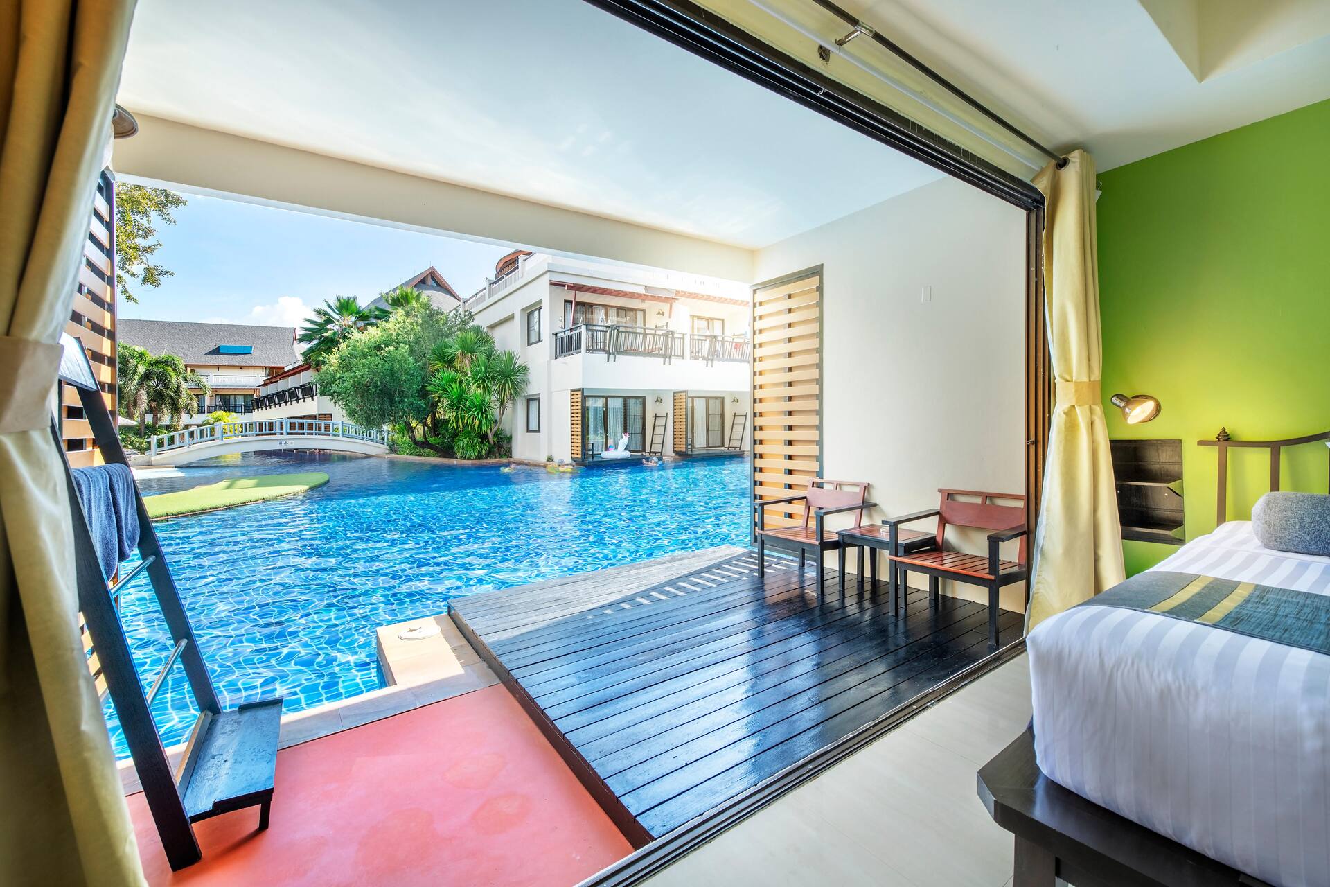 Lähistöllä on runsaasti ravintoloita, baareja ja palveluja, ja myös uimarannalle on lyhyt kävelymatka. Läheisen Peace Laguna Resort & Spa -hotellin uima-allasalue ja kuntoiluhuone on The Verandahin hotellivieraiden käytettävissä.