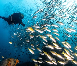 - edestakaisen kuljetuksen, yhden sukelluksen, sukellusvarusteet, teoriaopetuksen venematkan aikana, lounaan, hedelmiä, juomavettä ja tarvittaessa kansallispuistomaksun.