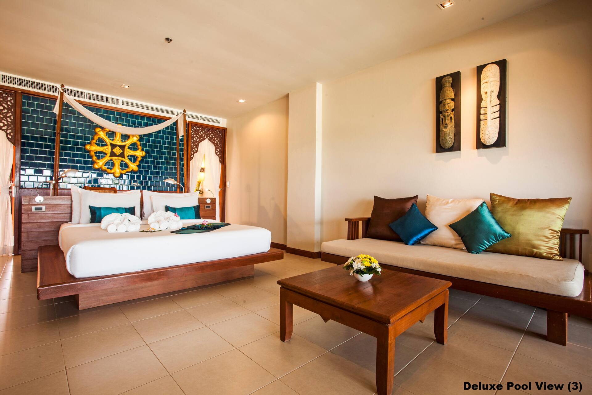 Deluxe-huone, parveke ja uima-allasnäkymä